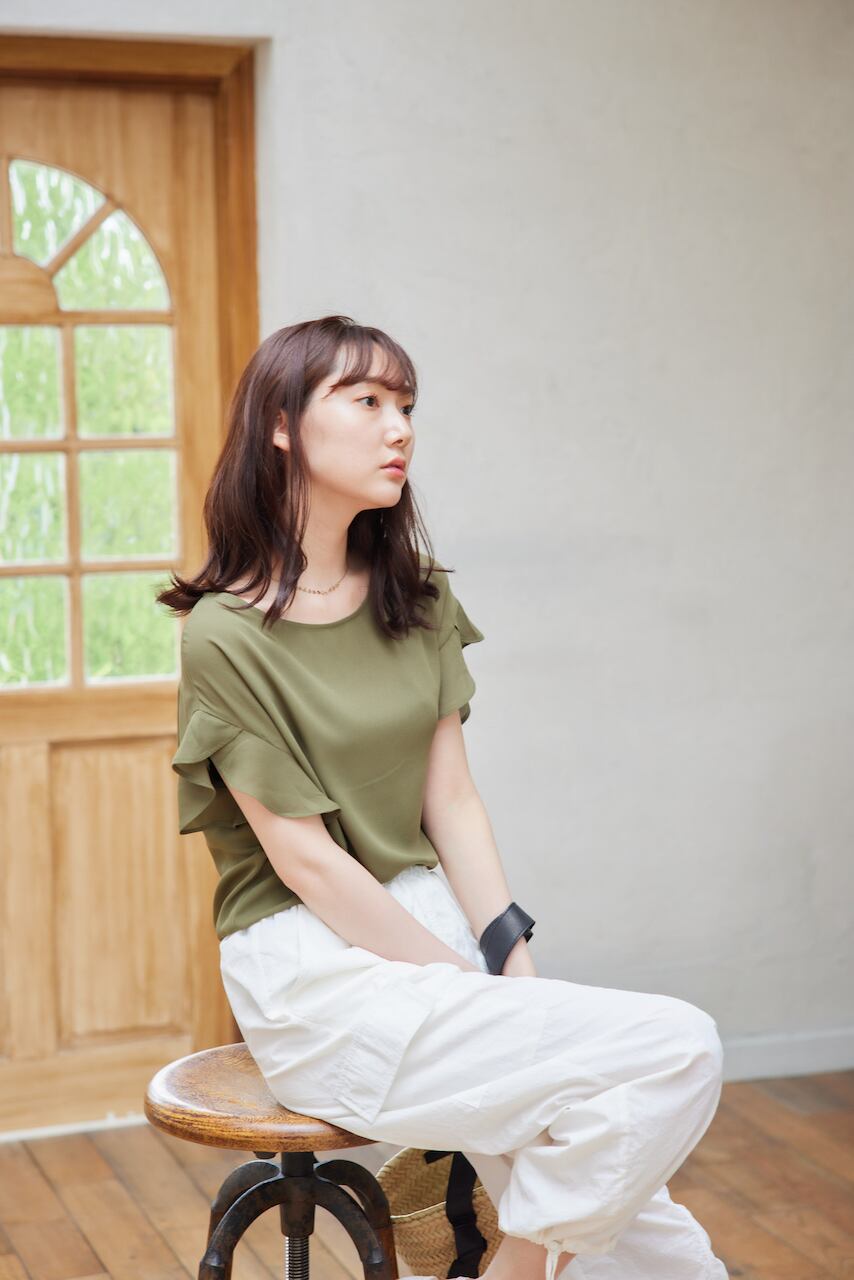 スカートにもパンツにも合わせやすい、ボトムを選ばないデザインです。